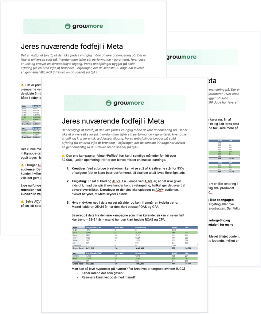 Ansøg om en uforpligtende analyse i dag, hvor vi vil gennemgå jeres Meta setup, identificere skjulte vækstmuligheder og servere konkrete tiltag til optimering.
